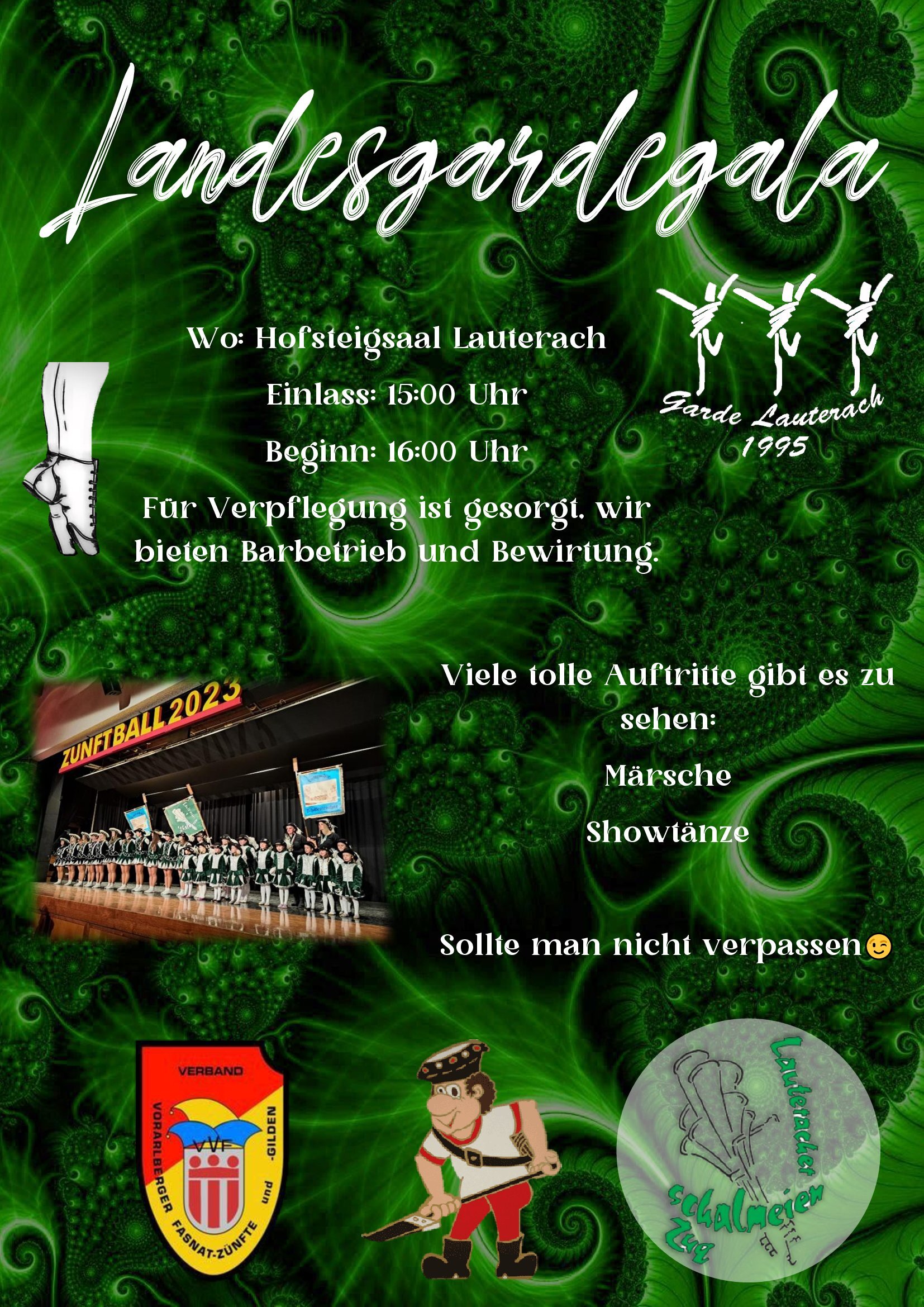 Kinder,- Teeny,- Damengarden zeigen ihr Können in Lauterach. Die Luteracher Schlollesteachar organisieren die beliebte "Gala" für unsere VVF - Landesgarden. Eine sehenswerte Show für "Jung & und Alt", die sich schon längst einen Namen gemacht hat. Der VVF dankt den Luterachar Schollesteachar für die Ausrichtung der Großveranstaltung und wünscht den Garden gutes Gelingen sowie den Gästen die "beste" Unterhaltung!